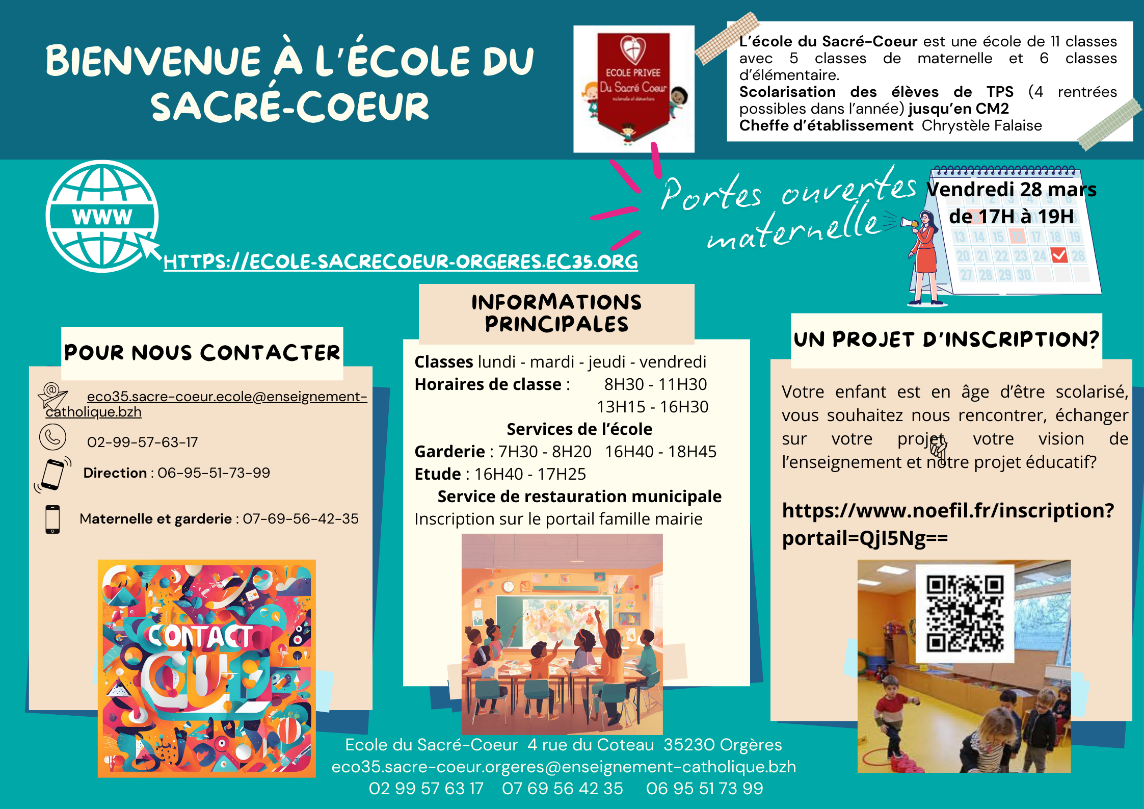 Située au cœur de la ville, notre école bénéficie de deux accès pratiques au 4 rue du Coteau et place de Molène, facilitant ainsi l’accès pour tous les élèves et leurs familles.